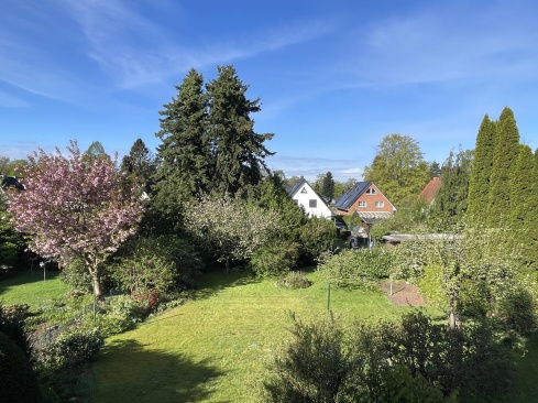 Trotz der relativen Nähe zur momentan frequentierten Straße "Beim Farenland" läßt es sich hier sehr ruhig und "grün" wohnen. Wir freuen uns auf ihren Besichtigungswunsch.