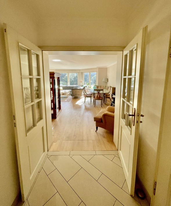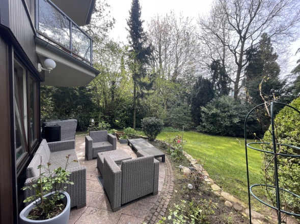 Herrlich sonnige, repräsentative und großzügige Wohnung mit zwei Schlafzimmern und einem großen Wohnzimmer auf einem circa 920 qm großen, gärtnerisch angelegten und südwestlich ausgerichteten Grundstück.